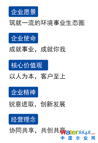 公司下轄三個(gè)全資子公司,在國(guó)內(nèi)同行中率先通過ISO9001國(guó)際質(zhì)量管理體系認(rèn)證、ISO14001國(guó)際環(huán)境管理體系認(rèn)證、GBT/T28001職業(yè)健康安全管理體系認(rèn)證。公司通過融合國(guó)際領(lǐng)先的水處理技術(shù)和管理理念,以整合創(chuàng)新、卓越運(yùn)營(yíng)、優(yōu)質(zhì)服務(wù)為目標(biāo),致力于中國(guó)水行業(yè)的可持續(xù)發(fā)展,成為水環(huán)境治理和生態(tài)修復(fù)的綜合服務(wù)商。
