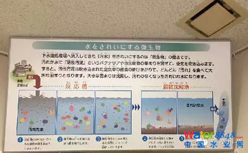 工作人員介紹說,這里是對社會開放的,每年都有很多長野縣內(nèi)的小學(xué)生來此參觀,為了解與自己日常生活息息相關(guān)的污水是如何處理排放的。講解的內(nèi)容用大紙板寫出,瓶子裝著樣品,供人仔細察看,顯微鏡也可以隨意觀察。