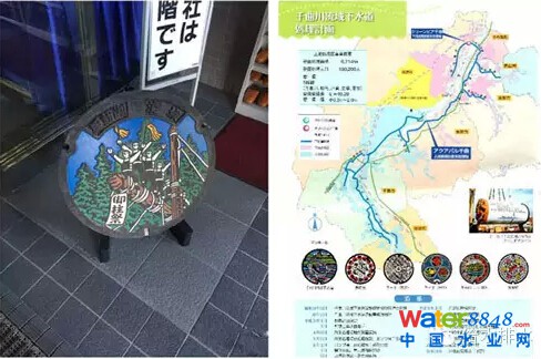 辦公樓門口裝飾著幾個設(shè)計別致又富有地區(qū)特色的下水道井蓋。曾在網(wǎng)上看到過介紹日本的下水道井蓋設(shè)計精美的文章,意在說明日本重視細節(jié)到了不放過井蓋。還真是這樣,這個污水處理廠管轄區(qū)域內(nèi)的各個市町村都設(shè)計有代表自己地區(qū)特色的井蓋。