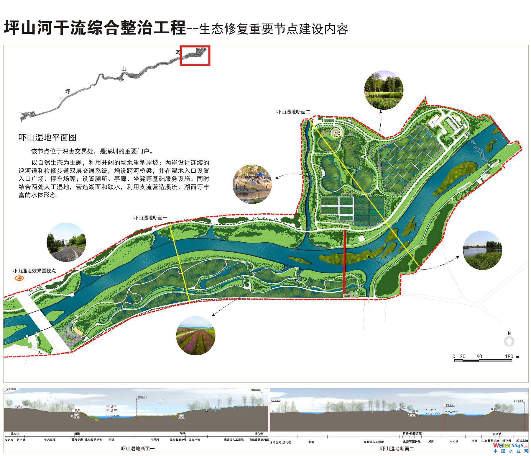 坪山河干流綜合整治工程治理范圍為坪山河干流源頭至深惠交接斷面兔崗嶺水陂段,河道治理全長(zhǎng)19.2公里,設(shè)計(jì)防洪標(biāo)準(zhǔn)按100年一遇,主要建設(shè)內(nèi)容包括河道防洪工程、水質(zhì)改善工程、生態(tài)修復(fù)工程、管線遷改工程等。