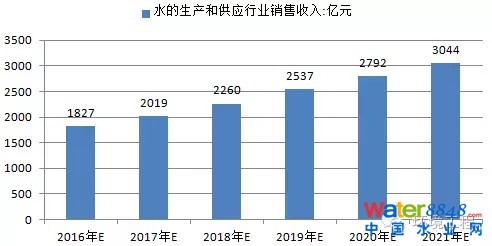 “十三五”期間將是水處理高峰期,2015年是新環(huán)保法實施的一年,最嚴格環(huán)保法的推出將使得執(zhí)法不嚴的現(xiàn)象得到糾偏。此外,2015年是“水十條”落地并全面執(zhí)行的第一年,行業(yè)發(fā)展進入加速期,水治理行業(yè)景氣度進入高峰期。預計到2021年,我國水的生產(chǎn)和供應行業(yè)銷售收入將超過3000億元。