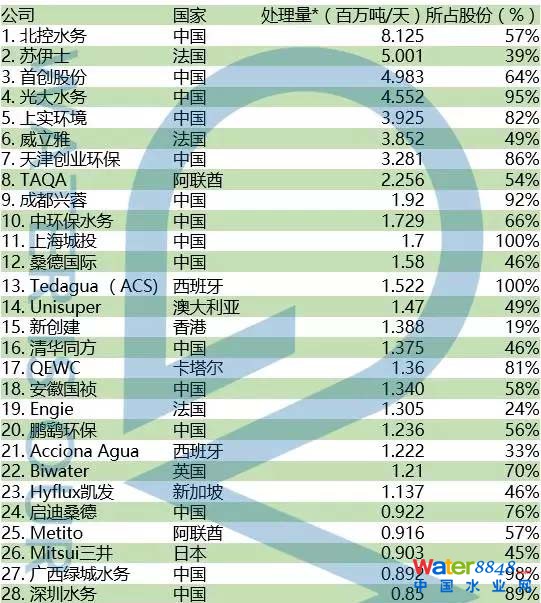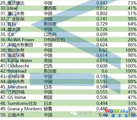 【排行榜】全球水務公司TOP50:BOT、BOO項目開發(fā)商排名