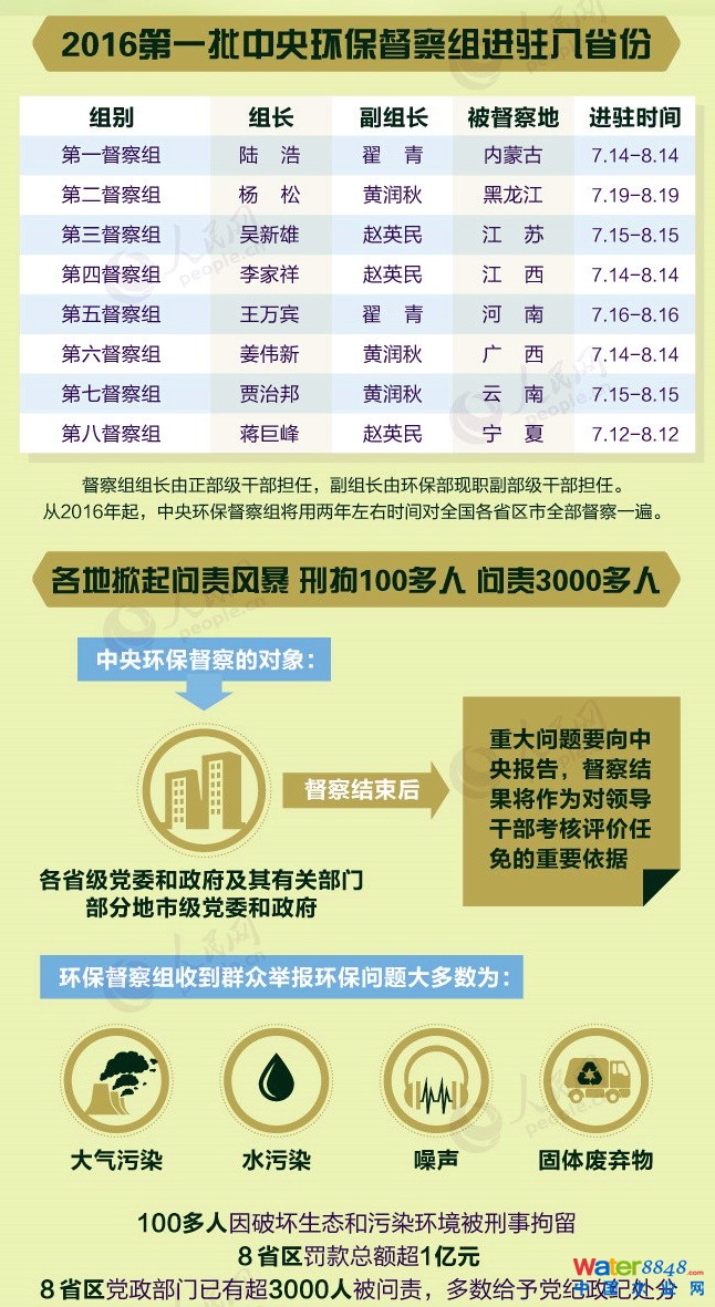 2016年第一批中央環(huán)保督察組進駐八省份分組情況
