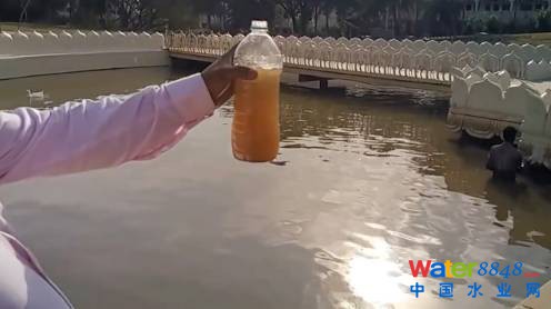 用塑料瓶裝一瓶普通河水,然后加入一勺粉末狀的東西,再用力的搖晃,臟東西就會(huì)沉淀,河水變成了純凈水。