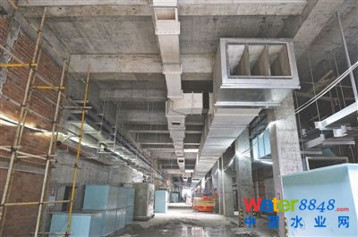 整個(gè)污水處理廠在地下10多米,地下一層為設(shè)施控制單元,地下二層為污水處理單元。