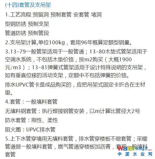 19.室內(nèi)排水管材:U-PVC排水管、鑄鐵管、混凝土管、組成洗臉盆和飲用噴水器到共用水封之間和連接衛(wèi)生器具排水短管處可用鋼管。