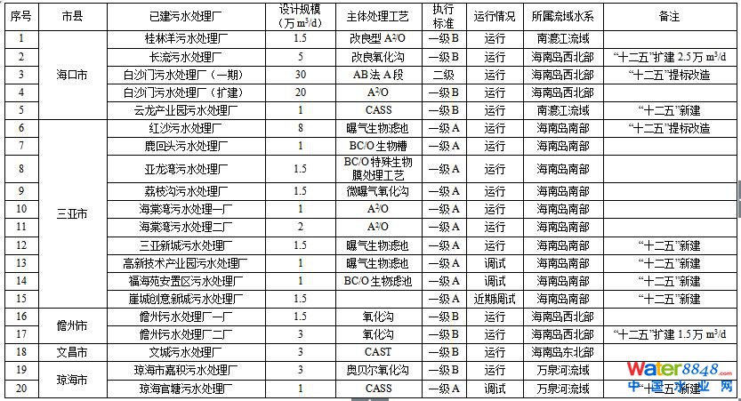 《海南省城鎮(zhèn)污水處理設施建設“十三五”規(guī)劃》總投資超過100億元