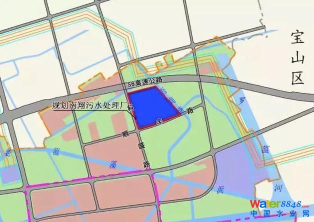 嘉定南翔污水處理廠位于吾尚浜以西,順豐路以北,科盛路以東,滬翔高速(S6)以南。