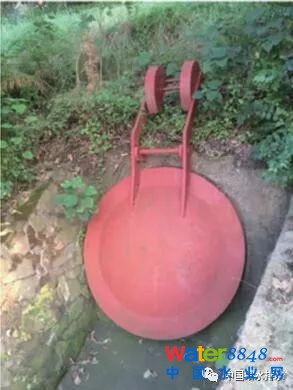 福壽溝排水系統(tǒng)具有強(qiáng)大的雨洪調(diào)蓄能力,在正常運(yùn)行期間,從未有過水患,這得益于古人尊重自然、疏而不堵的治水理念。福壽溝排水系統(tǒng)的調(diào)蓄功能由城墻、福壽溝、水塘完成。贛州古城三面環(huán)水,江水上漲淹城時(shí),一方面城墻具有防護(hù)功能,另一方面福壽溝末端排水口的“拍門”(古代為木制現(xiàn)改為鐵制,如圖3所示),可在江水淹沒排水口時(shí)自動(dòng)閉合,防止江水倒灌入福壽溝,而在平時(shí)水流可將其沖開正常排水,構(gòu)思十分巧妙。水塘在城市生態(tài)系統(tǒng)的循環(huán)過程中,起著調(diào)節(jié)氣溫、改善氣候、美化環(huán)境、防澇排水的作用。福壽溝連接起城內(nèi)上百口大小池塘,其末端通往城墻各處將水排入江中。由此,城墻防護(hù),池塘儲(chǔ)水,福壽溝連通疏導(dǎo),三部分各司其職,互相配合,實(shí)現(xiàn)暴雨時(shí)江水上漲,城內(nèi)雨水通過福壽溝排入池塘,洪峰過后再從池塘排入江中的功能,保證暴雨時(shí)路面不積水,居民正常生活。