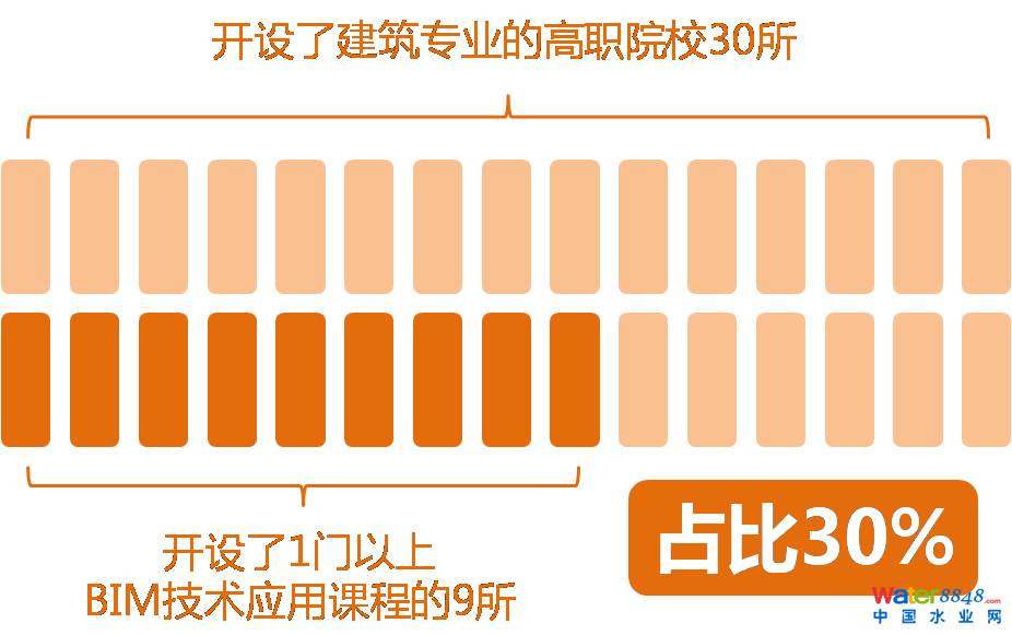 自2004年歐特克與教育部共同推進(jìn)BIM教育以來,目前全國(guó)近2000所建筑類院校,開設(shè)BIM技術(shù)應(yīng)用相關(guān)課程的比例為30.5%。