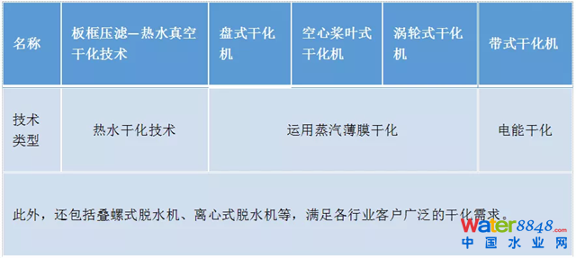 污泥干化可分為機(jī)械干化和熱干化兩大類型,機(jī)械干化是通過機(jī)械脫水設(shè)備進(jìn)行物理干化的工藝,因其發(fā)展歷史悠久,現(xiàn)在市場上已出現(xiàn)板框、槳葉和原盤式干化機(jī)。熱干化顧名思義是利用熱源對污泥直接或間接進(jìn)行水分蒸發(fā)干化,直接制造熱源的成本通常比機(jī)械干化高。