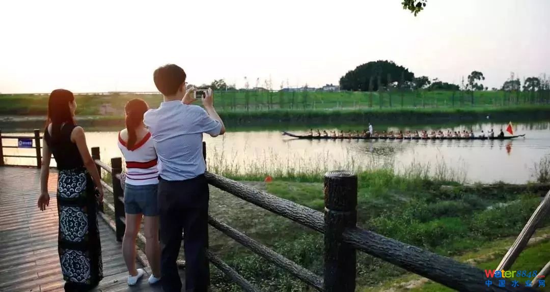 鶴山市沙坪河綜合整治工程后,市民們在龍舟公園舉辦端午龍舟賽。© BEWG