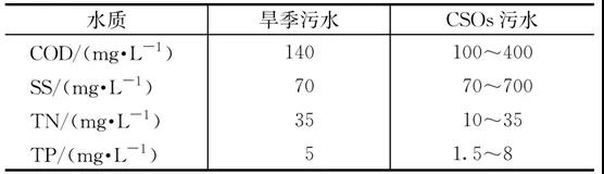 表3為武漢市喻家湖片區(qū)旱季污水及雨季時(shí)CSOs污水水質(zhì)情況。