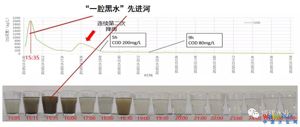 4.雨天溢流污染太嚴重。排水管道養(yǎng)護管理工作最最重要的兩個字是“清、通”。雨水管是“清”,“清”就是把雨水管道中的積泥“清”出來,讓雨水管做到旱天無積泥、少積泥!污水管是“通”,把積泥“通”到下游去,進到污水處理廠,讓污水管無淤積、無堵塞、水暢流!合流管既要“清”、也要“通”,旱天多多“通”,保證低水位時,像污水管一樣,無淤積、無堵塞、水暢流;降雨前還應(yīng)該好好再進行“清”。雨水管和合流管都有排河道水體的口門,“清”的目的就是雨天少點污染物入河。只有最大限度地減少管道中的積泥,才能夠減少雨天溢流污染。可是污水管、合流管和雨水管往往一年四季都是高水位,甚至是滿管流,這就讓“清、通”養(yǎng)護變得十分困難,就不可能做到有效地將雨水、合流管中的積泥“清出來”!好比煮了一鍋稀飯,想把米粒都撈干凈,是件很難的事道理是一樣的。圖6是奧地利排水管道中的積泥情況,其大部分管道積泥不超過管徑的1/40。這比我們養(yǎng)護后要求積泥厚度不大于1/8可好得多啊!管道積泥少了,合流管、雨水管雨天排水口溢流和出流的污染物就少了。圖7是某平原河網(wǎng)地區(qū)城市雨天排水口出流污染的構(gòu)成,在總污染負荷中,管道積泥的污染負荷要占到60%以上,可見合流管道、雨水管道清淤工作的重要性之高。圖8是某山地城市雨天合流制排水口污染物變化情況,COD最高可以高達2000mg/L之巨。
