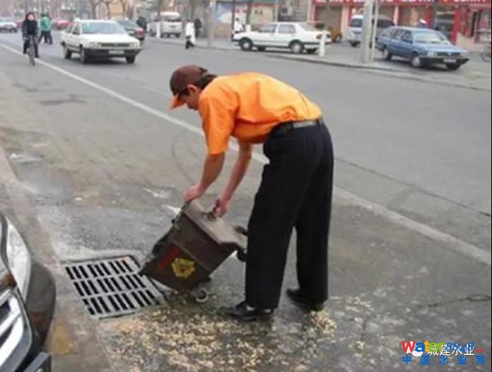 四是,還得把雨水口好好管住才行,往雨水口倒各種亂七八糟的臟水,就是污水直排,如圖17所示。不要說分流制雨水管,合流管污水沒有考慮這部分污水。消除污水直排是硬任務(wù),不管咋行。