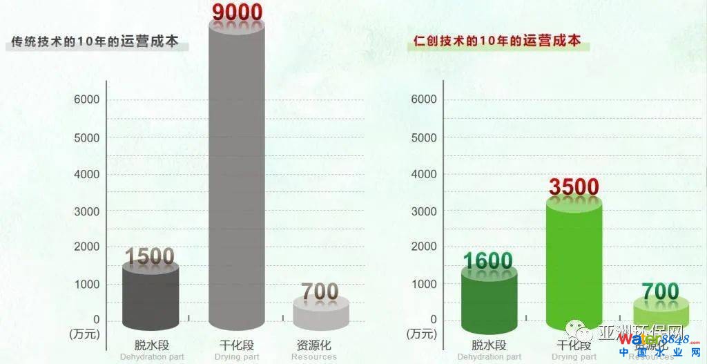 污泥處理處置傳統(tǒng)技術(shù)與仁創(chuàng)技術(shù)的10年的運營成本對比