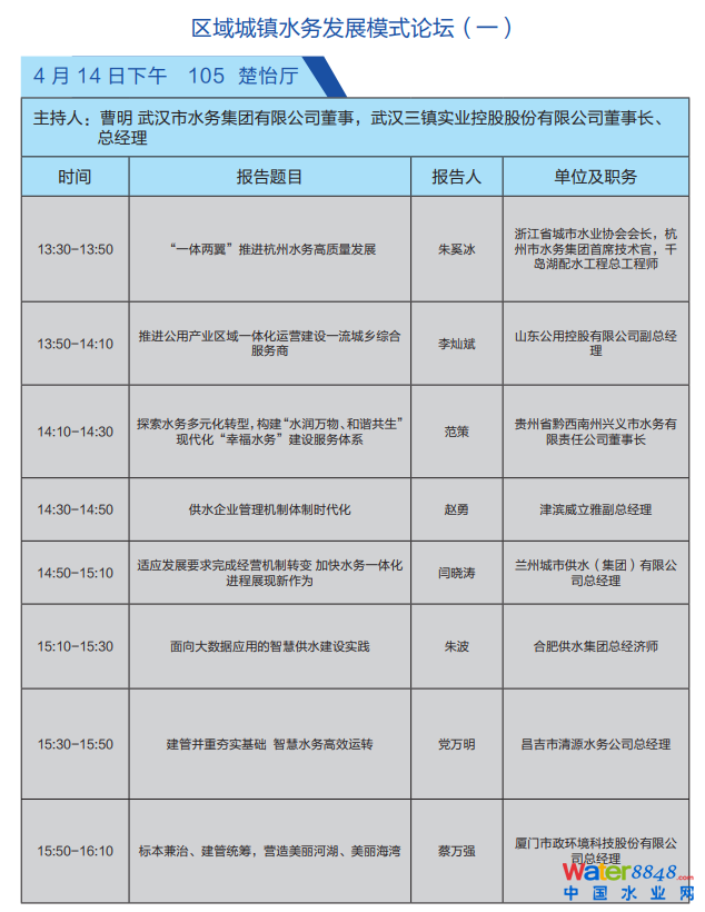 區(qū)域城鎮(zhèn)水務(wù)發(fā)展模式論壇(一) 發(fā)布日期:2023-05-2