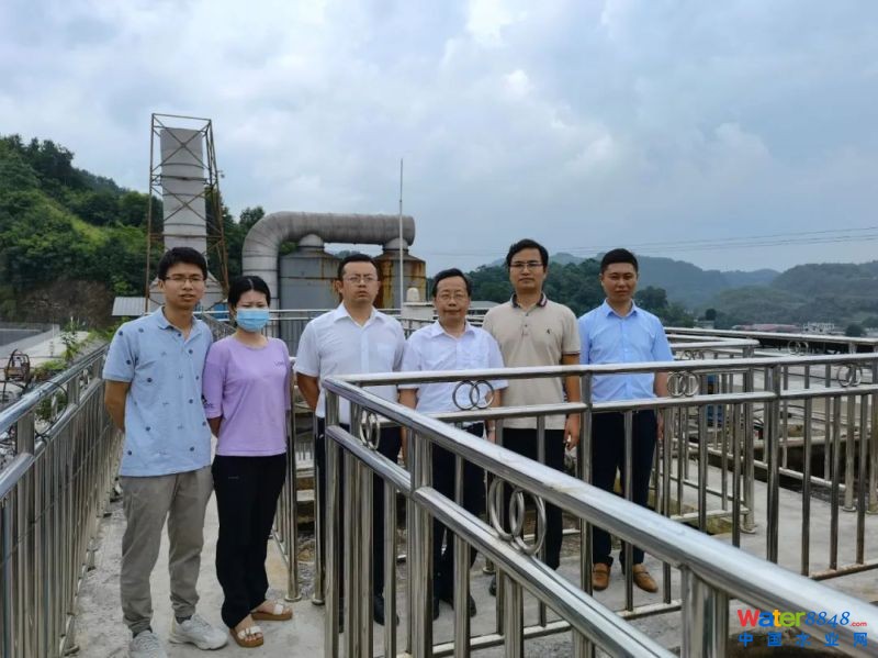 周少奇(右三)帶領(lǐng)團(tuán)隊(duì)深入喀斯特地區(qū)污水處理一線進(jìn)行實(shí)地調(diào)研考察