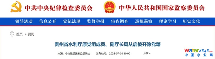 貴州省水利廳原黨組成員、副廳長(zhǎng)周從啟被開除黨籍
