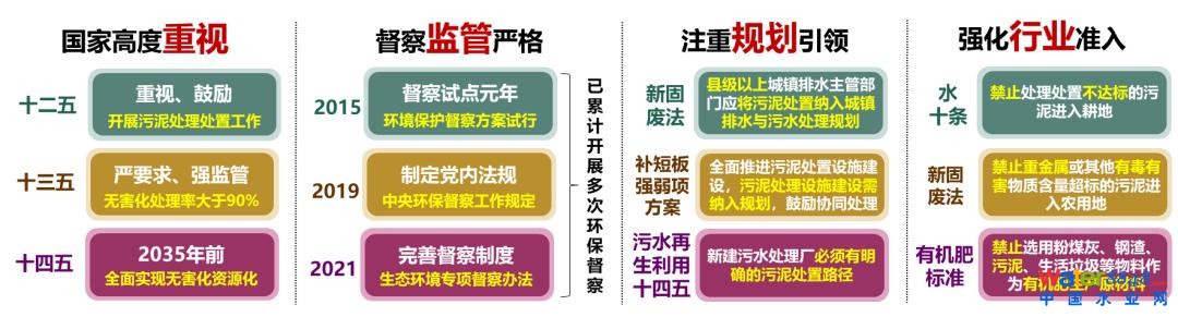 黨的十九大以來(lái),隨著生態(tài)文明建設(shè)深入推進(jìn),污泥安全處置作為生態(tài)環(huán)境保護(hù)、建設(shè)美麗中國(guó)的重要環(huán)節(jié)之一,受到國(guó)家、行業(yè)高度重視。發(fā)改委、住建部等相繼印發(fā)多項(xiàng)政策文件,明確提出加快推進(jìn)污泥無(wú)害化處置和資源利用,加快補(bǔ)齊城鎮(zhèn)生活污水處理、污泥安全處置設(shè)施建設(shè)短板。