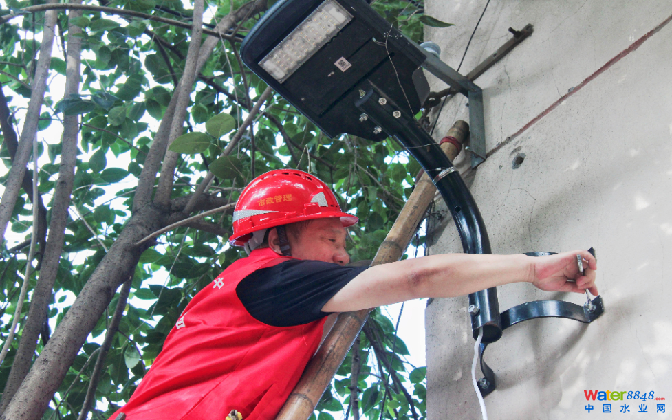 “光明路燈班”為社區(qū)居民安裝路燈。