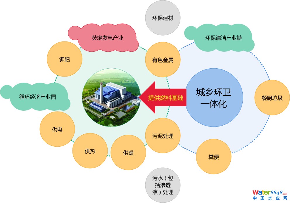 垃圾通過(guò)焚燒發(fā)電產(chǎn)生的熱能,除了滿足每個(gè)項(xiàng)目自身使用以外,還可以為項(xiàng)目地城鄉(xiāng)供熱。